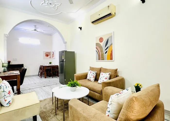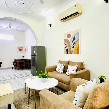 De zelfcatering faciliteiten hebben een ingerichte keuken met een waterkoker en een koelkast. New Delhi treinstation is binnen ongeveer 30 minuten met de auto.